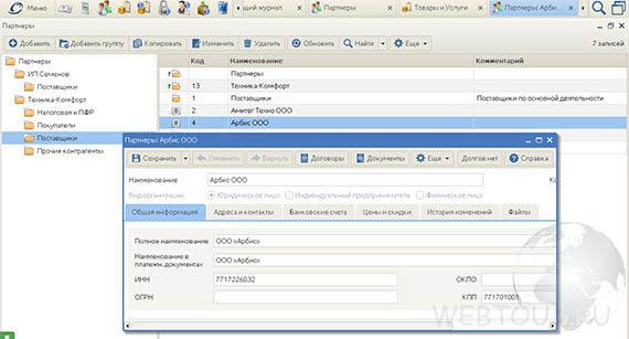 - Хранить информацию о товарах, партнёрах и других объектах учета в удобных справочниках
