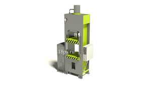 Пресс служит для формовки изделий. Получаемая масса в экструдере закладывается в пресс-форму установленную на рабочем столе пресса, формование изделия происходит под давлением при одновременном охлаждении пресс-формы, что позволяет значительно увеличить производительность, готовое изделие извлекается из формы нижними толкателями автоматически и готово к складированию на поддоны уже без дополнительного вылеживания (в отличии от цементных изделий).